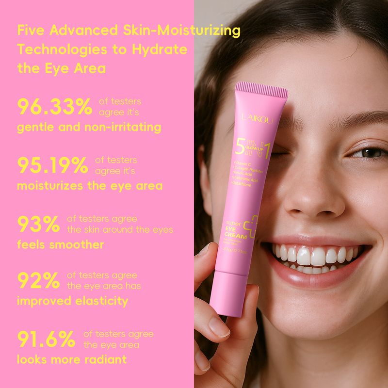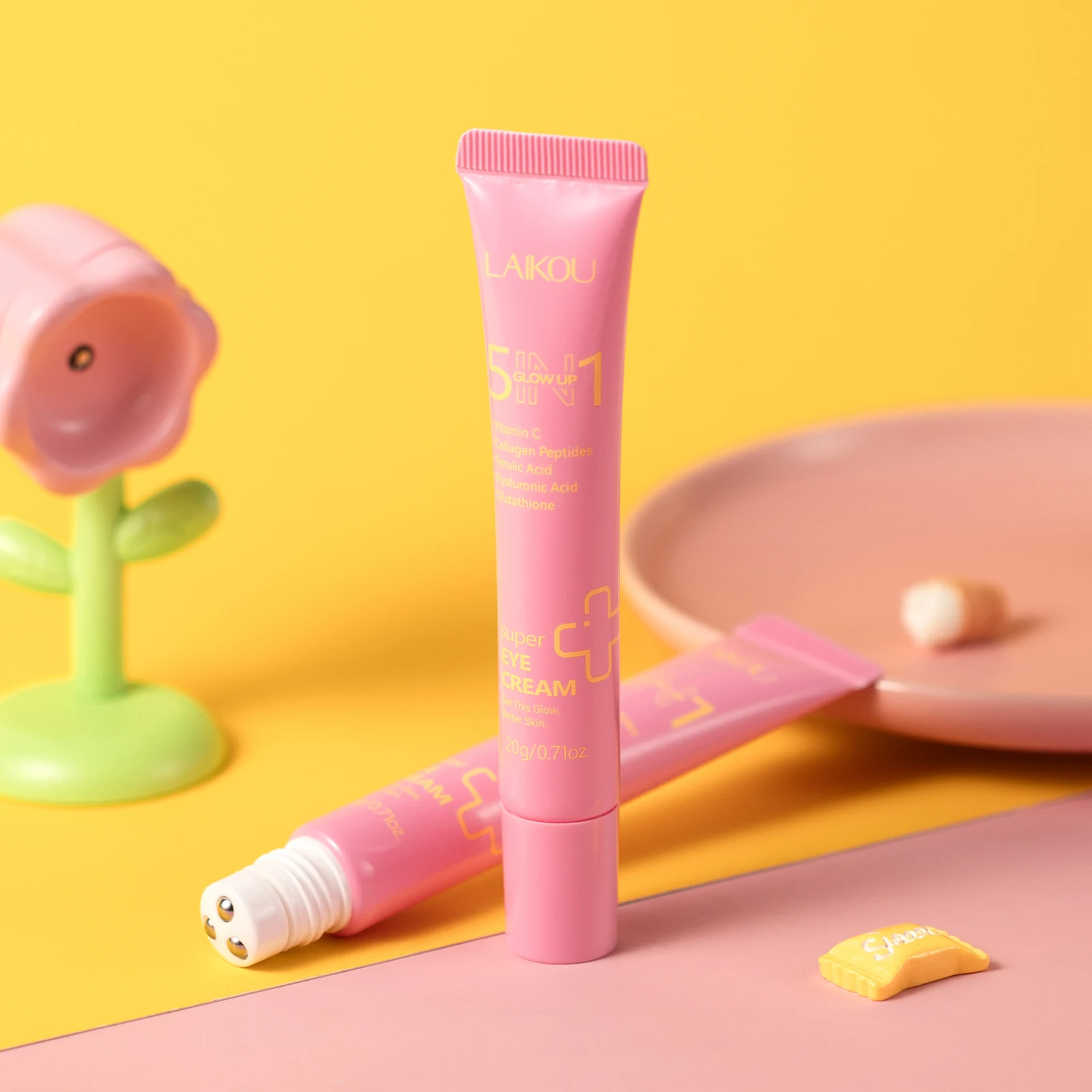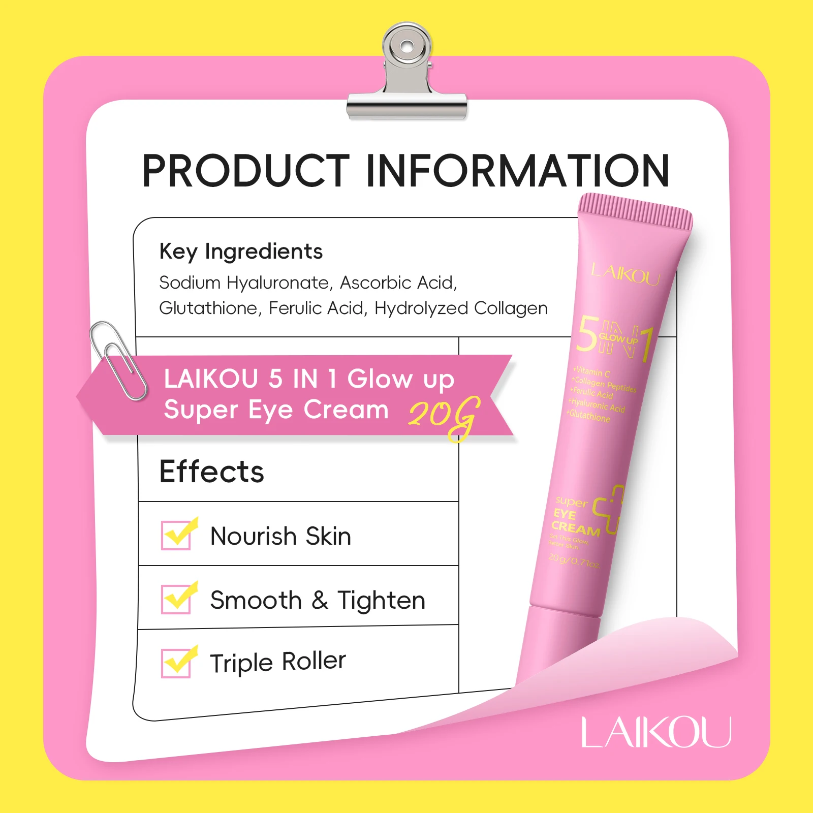 LAIKOU 5 in 1 Grow up Super Roller Eye Cream Anti-Wrinkle Targets Dark Circles With Glutathione Ferulic Acid Ingredients