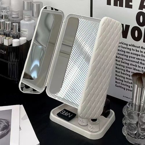 USB LED Portable Desktop Cosmetic Mirror Three Sides Folding and Touch Screen Vanity Mirror with Magnifying Glass 2 sales